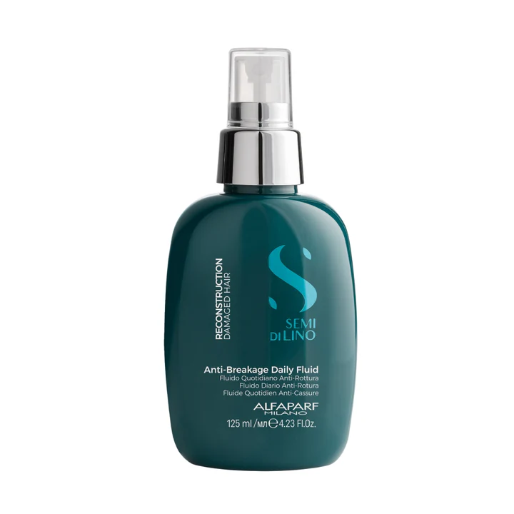 Alfaparf Semi Di Lino Reconstruction Anti Breakage Daily Fluid continues the repair process, sealing the hair cuticles to create a protective barrier. Works without weighing the hair down.