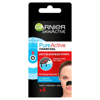 - Garnier pure active intensive anti blackhead charcoal nose strips for chin, nose & forehead