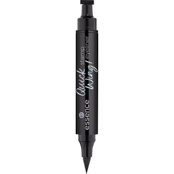 Thanks to the essence Quick Wing! stamp eyeliner 01 black, you can easily apply long-lasting symmetrical and sharp wings to your eye. With that, the eyeliner is perfectly suited for makeup beginners as well as experts. The stamp side creates flawless wings next to your eyes, while the precise felt tip of the eyeliner makes it easy to connect the wing with your eye and draw an eyeline on your entire lid.