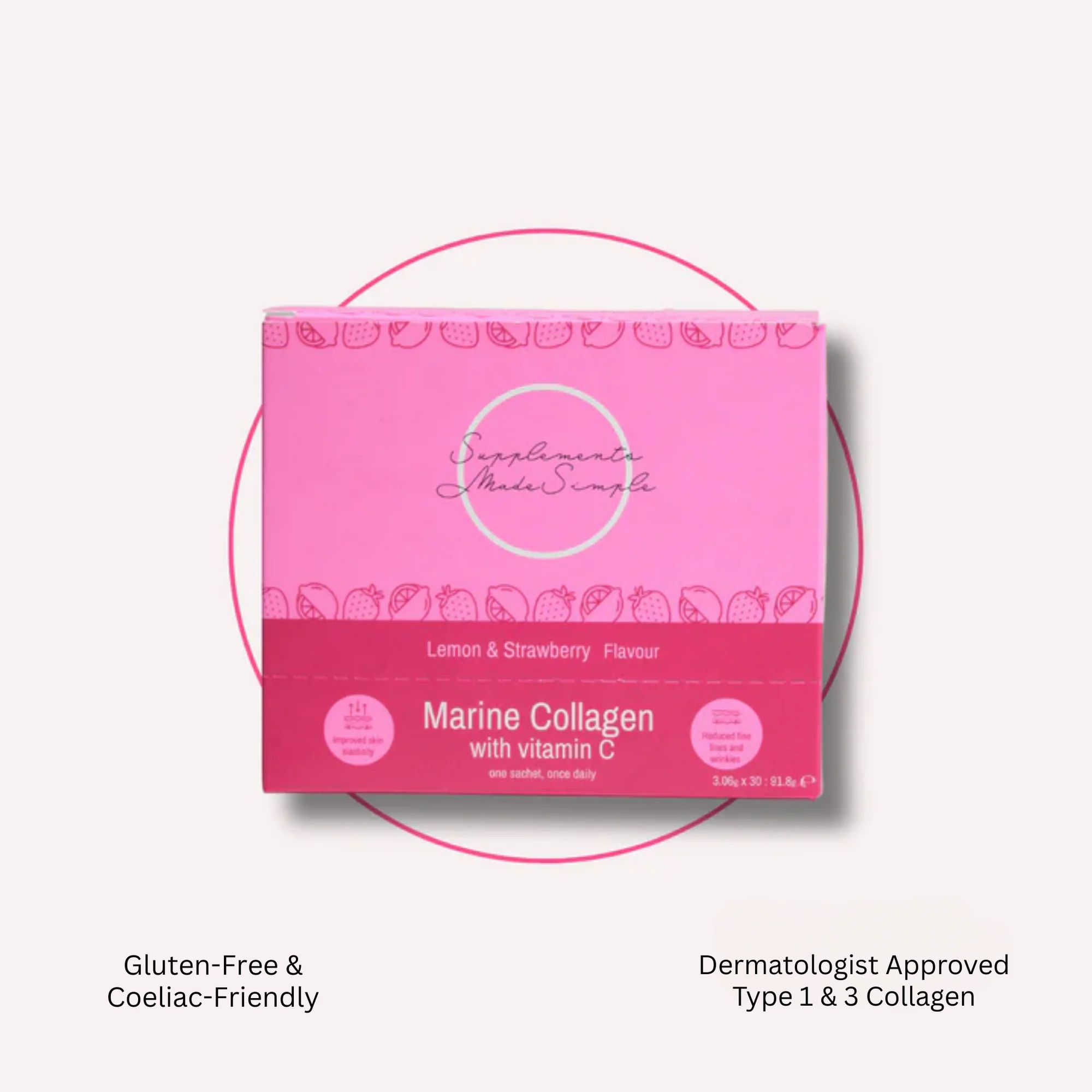 - 2.5g Marine Collagen. 40mg Vitamin C. Take one to two sachets daily.